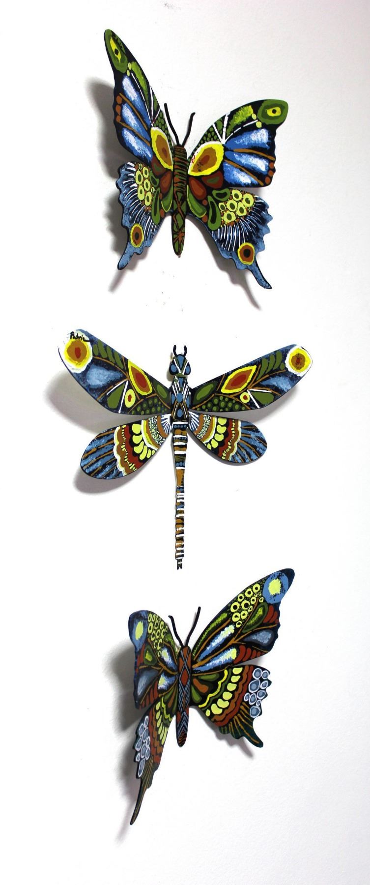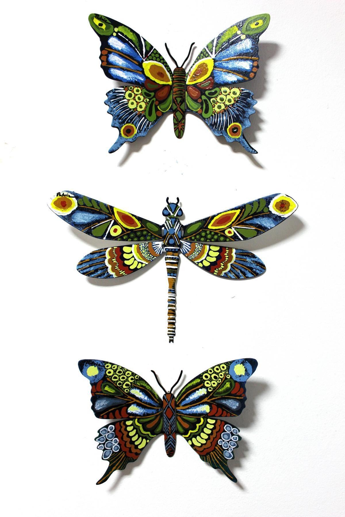 Artist: Patricia Govezensky. Medium: Original Painting on Cutout Steel (Set of 3). Title: Set of 3 Butterflies. Size (Unframed): 7" x 9.5". Certificate of Authenticity: From the publisher. Additional: Approximately 7x9.5" Each. Reference# 11301.