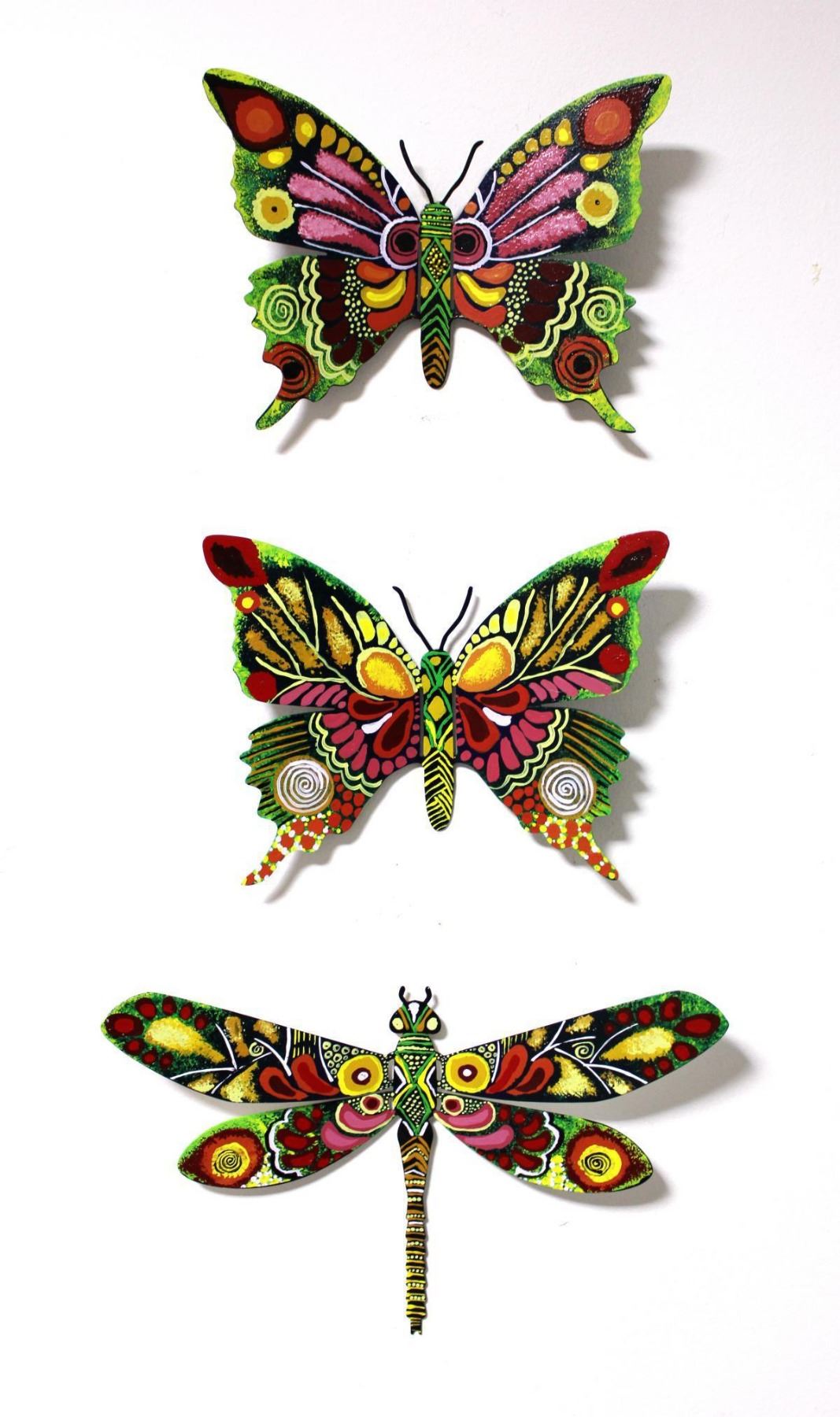 Artist: Patricia Govezensky. Medium: Original Painting on Cutout Steel (Set of 3). Title: Set of 3 Butterflies. Size (Unframed): 7" x 9.5". Certificate of Authenticity: From the publisher. Additional: Approximately 7x9.5" Each. Reference# 11305.