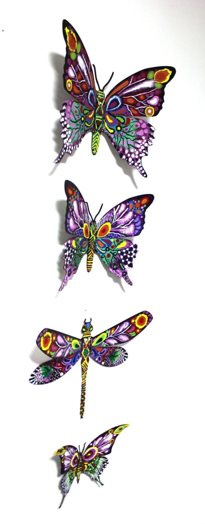 Artist: Patricia Govezensky. Medium: Original Painting on Cutout Steel (Set of 4). Title: Set of 4 Butterflies. Size (Unframed): 7" x 9.5". Certificate of Authenticity: From the publisher. Additional: Approximately 7x9.5" Each. Reference# 11300.