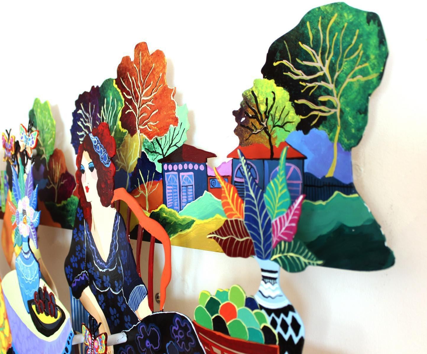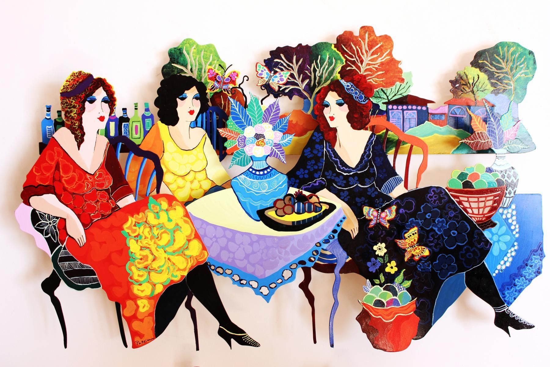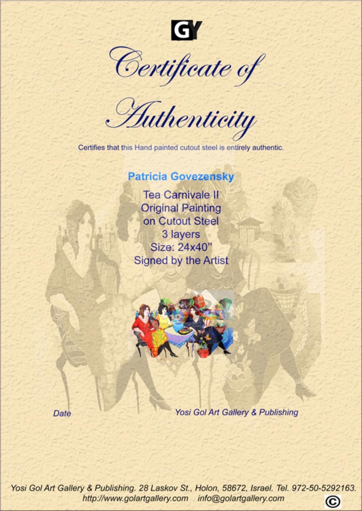 Artist: Patricia Govezensky. Medium: Original Painting on Cutout Steel. Title: Tea Carnivale. Size (Unframed): 24" x 40". Certificate of Authenticity: From the publisher. Reference# 10607.