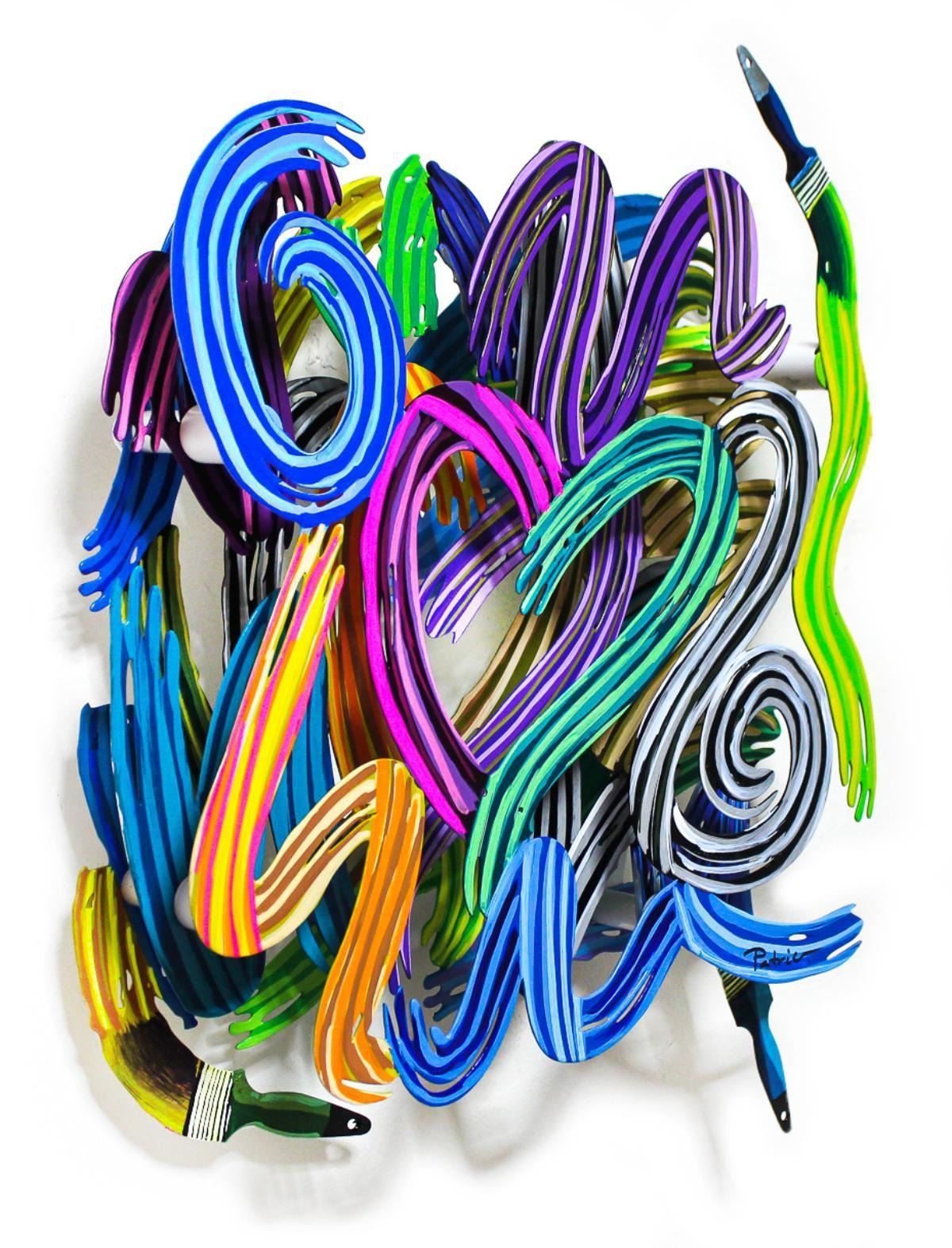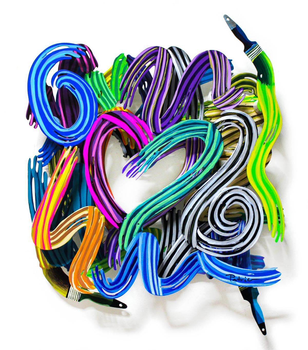 Artist: Patricia Govezensky. Medium: Original Painting on Cutout Steel. Title: Work of Heart (Mini Series). Size (Unframed): 17" x 14". Certificate of Authenticity: From the publisher. Additional: 3 Layers of Cutout Steel. Reference# 18073.