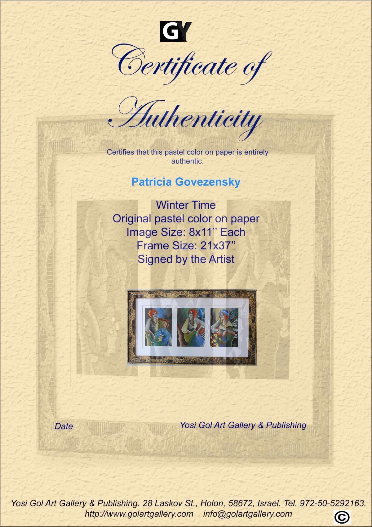 Artist: Patricia Govezensky. Medium: Original Pastel Color on Paper. Title: Winter Time. Size (Unframed): 8" x 11". Size (Framed): 21" x 37". Certificate of Authenticity: From the publisher. Reference# 10360.