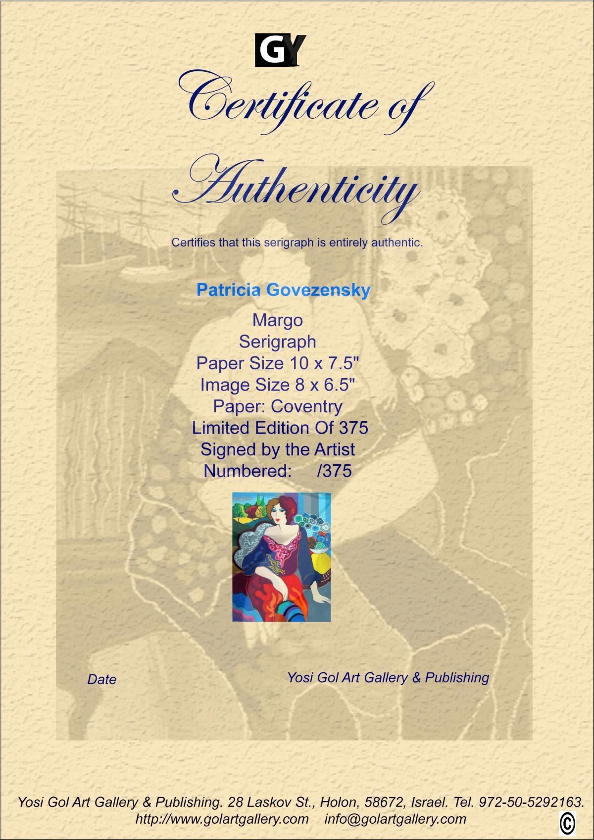 Artist: Patricia Govezensky. Medium: Original Serigraph on Paper. Title: Margo. Size (Unframed): 10" x 7.5". Limited Edition: Edition of 375. Certificate of Authenticity: From the publisher.