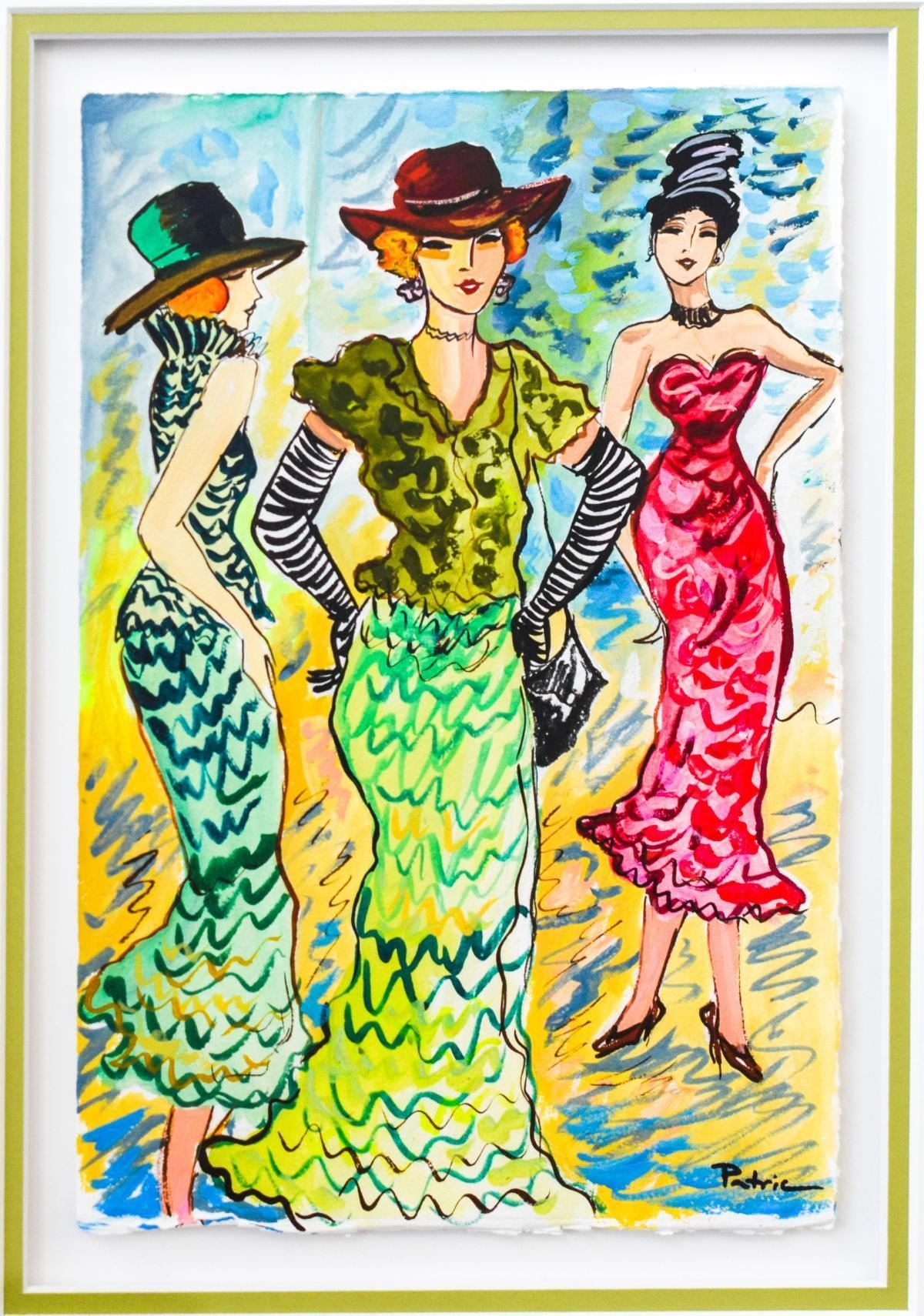 Artist: Patricia Govezensky. Medium: Original Watercolor. Title: Modeling. Size (Unframed): 11" x 7.5". Size (Framed): 21" x 17". Certificate of Authenticity: From the publisher. Reference# 11541.