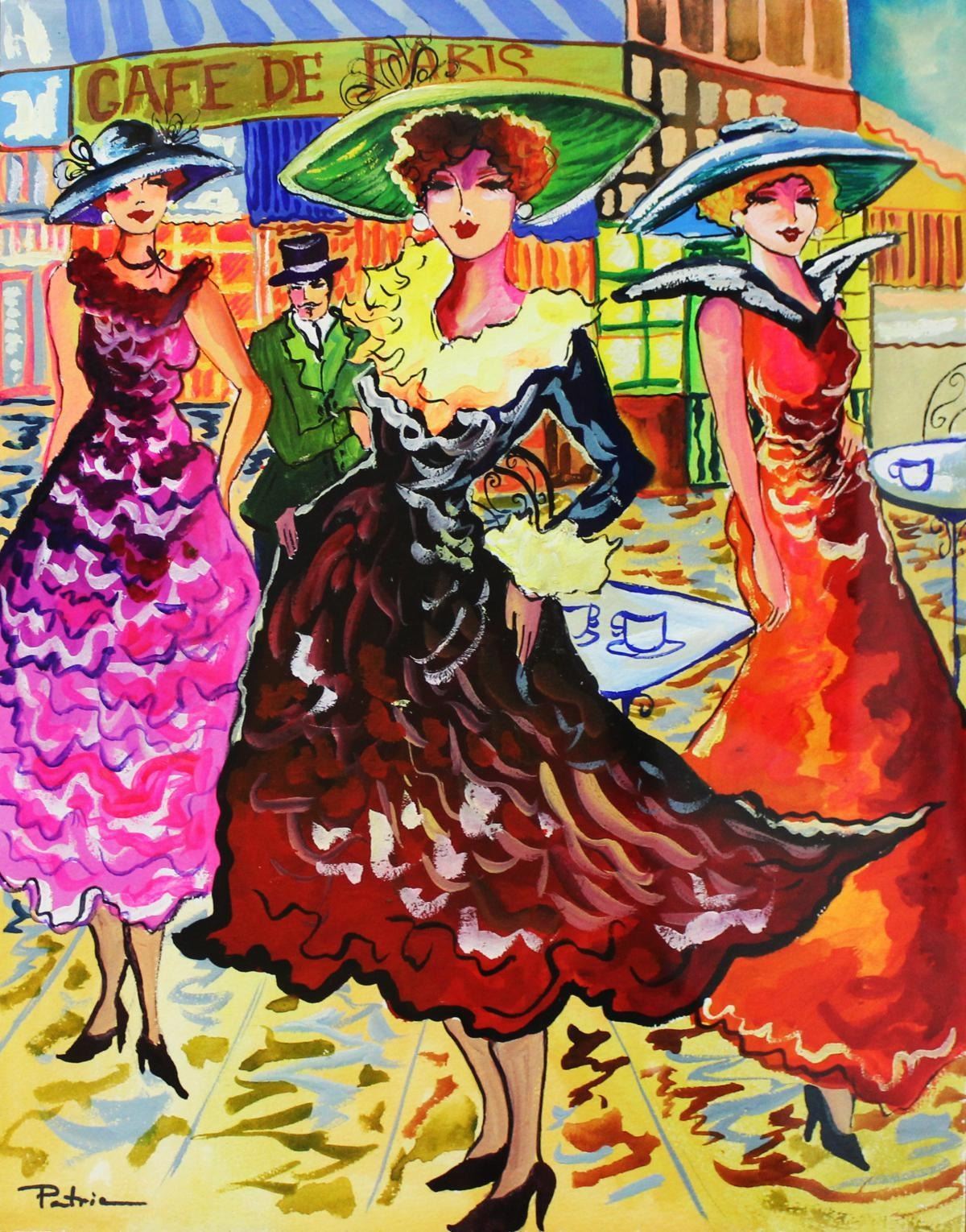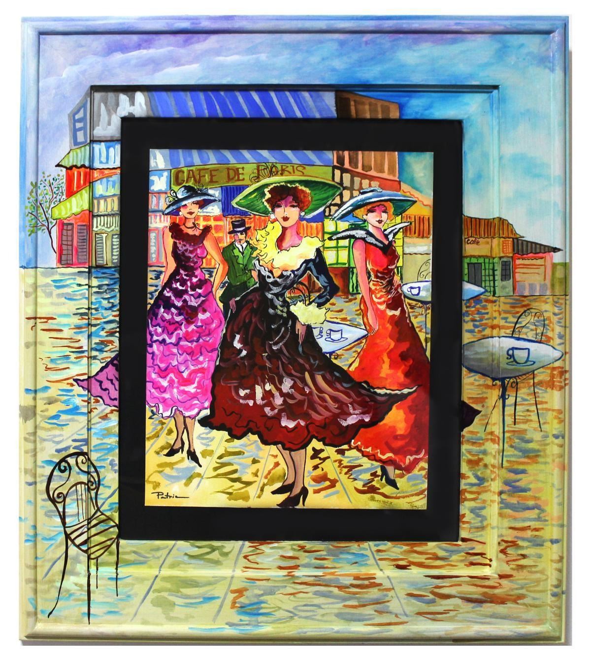 Artist: Patricia Govezensky. Medium: Original Watercolor with Hand Painted Frame. Title: Cafe De Paris. Size (Unframed): 14" x 11". Size (Framed): 24.5" x 21". Certificate of Authenticity: From the publisher. Reference# 12337.