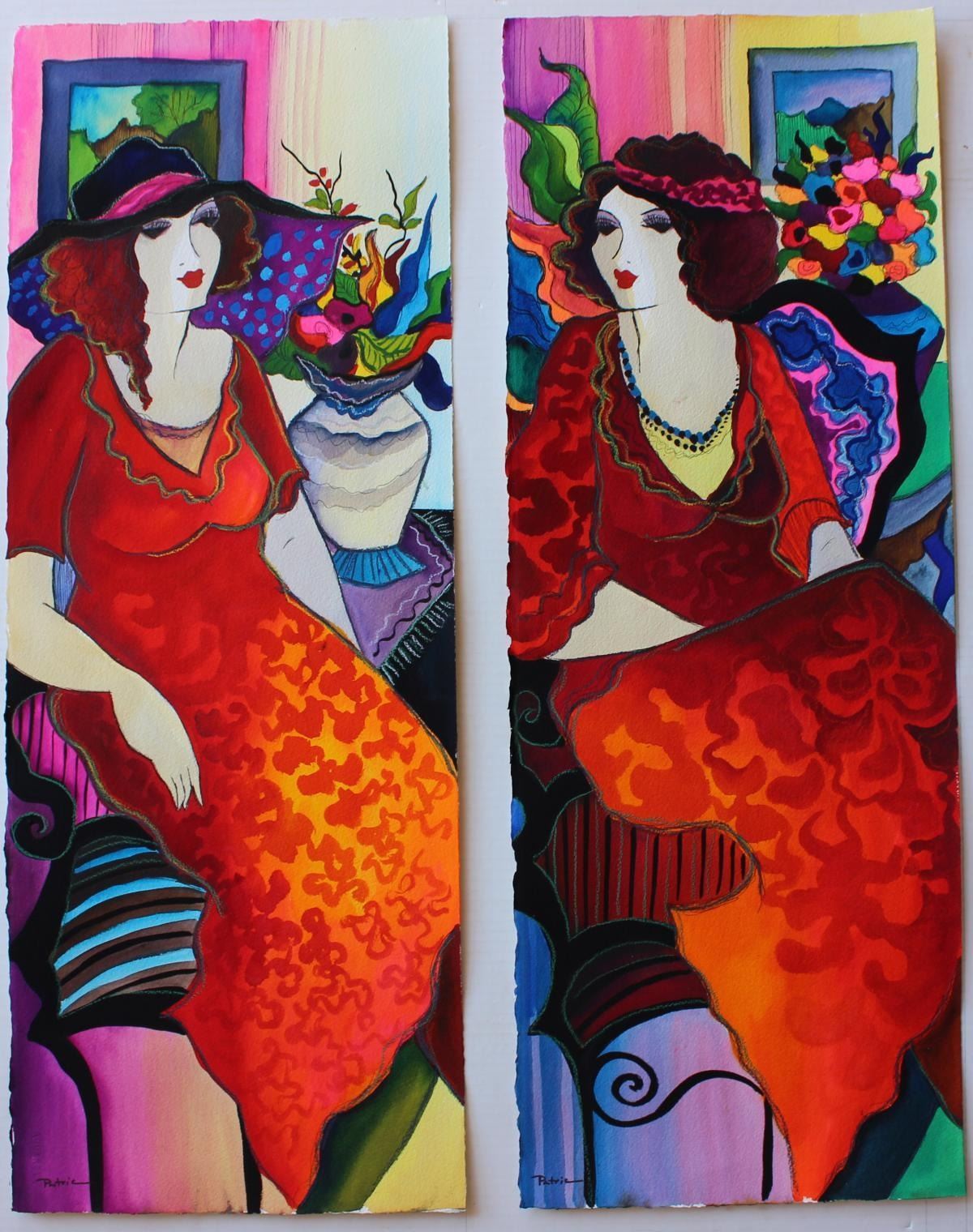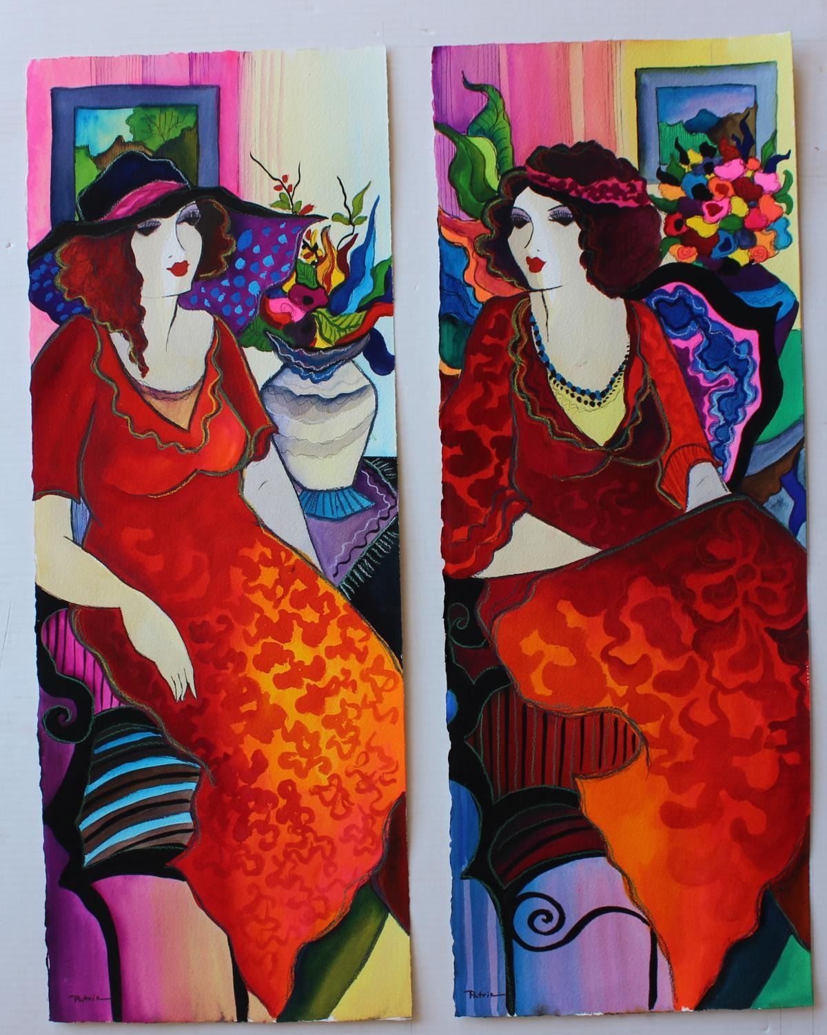 Artist: Patricia Govezensky. Medium: Set of Two Original Watercolors. Title: Happy Hour. Size (Unframed): 29" x 11". Certificate of Authenticity: From the publisher. Reference# 10226.