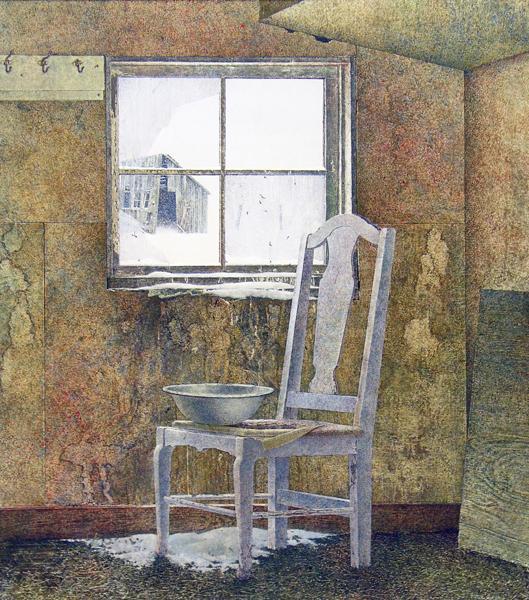 Canadian [b. 1953] THE BUNKHOUSE PORCH (NEAR GEM, ALTA); 1984 egg tempera on board 22.75 x 26 in. (57.8 x 66 cm) signed, titled & dated