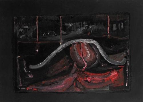 ATHLYNESQUE signed and dated [1989] centre oil on paper <BR>84 by 56cm., 33 by 22in.