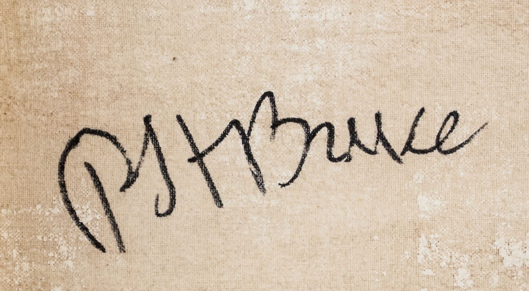 Oil on canvas, framed. Featuring an abstract cubist composition. Signed PHBruce on verso. Attributed to Patrick Henry Bruce (1949-1916, American). 49 x 33 cm (19.25 x 13 in), Frame: 62 x 46 cm (24.5 x 18 in). PROVENANCE: This item has limited provenance from a Southern Ontario estate