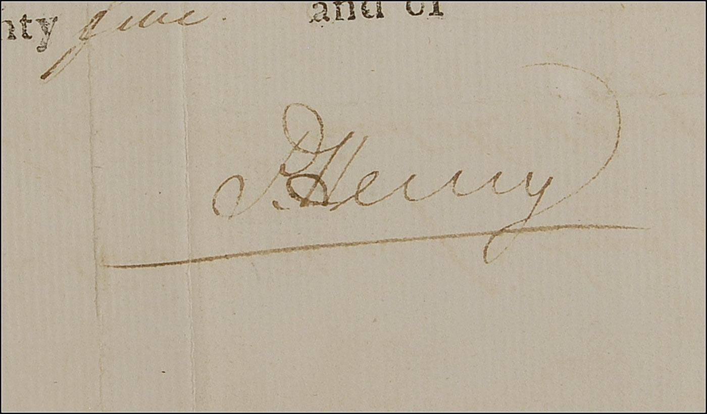 American patriot (1736–1799) best remembered for his stirring, historic declaration, ‘Give me liberty or give me death.’ Partly-printed DS, signed “P. Henry,” one page, 13 x 16.5, December 2, 1785. Henry, as governor of Virginia, grants 500 acres of land “on the waters of Middle Island Creek,” to James Ogelsby. Neatly signed at the conclusion by Henry. Nicely double matted and framed with an engraved portrait to an overall size of 30 x 24. In very good condition, with intersecting folds, scattered toning and soiling, a bit heavier to folds, a few partial separations along folds (perhaps repaired on the reverse), and show-through from docketing on reverse. An impressive document in both size and signature quality. Oversized.