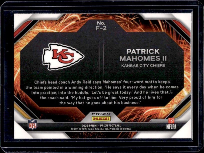 Patrick Mahomes Green Wave Fireworks 2023 Panini Prizm #F-2 This card has a print line see pictures