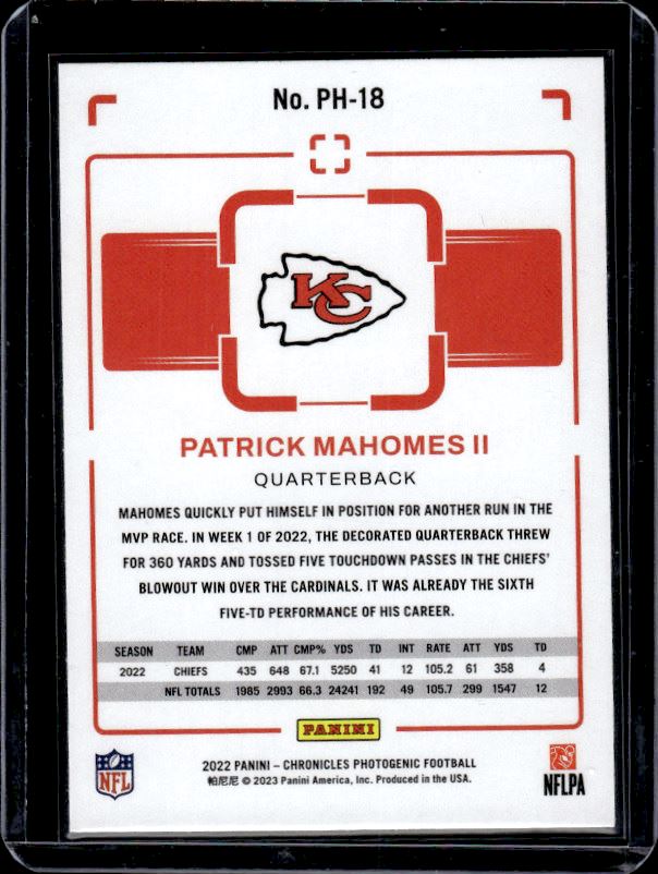 Patrick Mahomes, Jr. 2022 Panini Chronicles Photogenic #PH-18