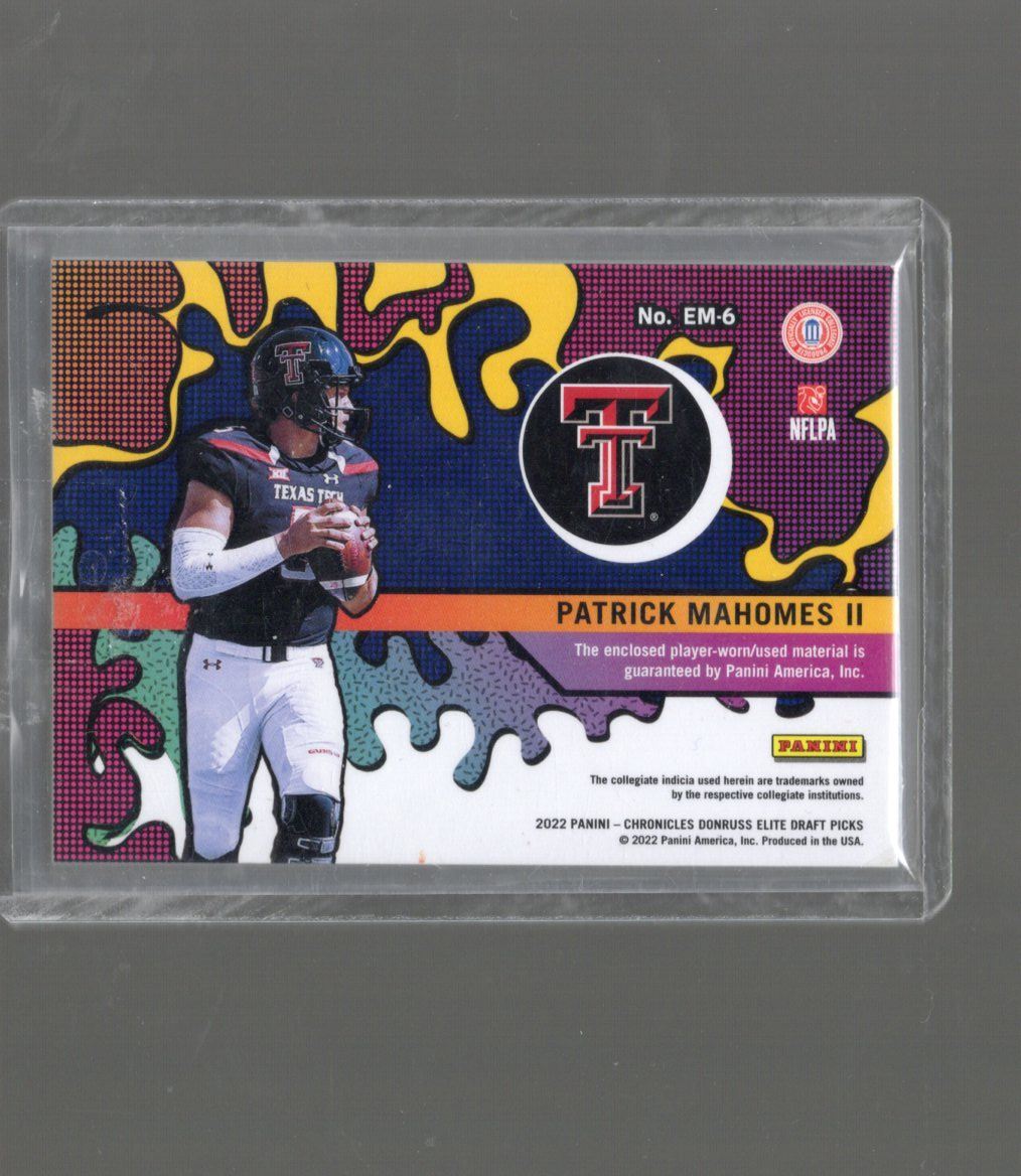 Patrick Mahomes Player Worn Patch 2022 Panini Chronicles Donruss Elite Draft Picks #EM-6