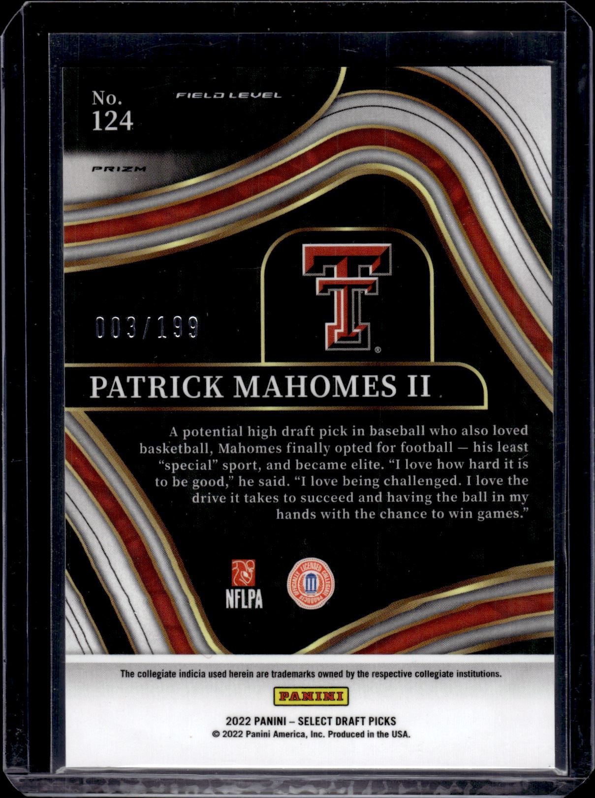 Patrick Mahomes Silver Prizm Field Level /199 2023 Select Draft Picks #124