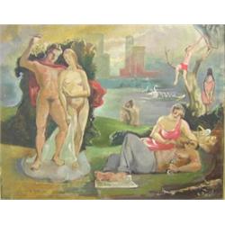 Patrick Morgan (American, 1904-1982) Dejeuner Sur L'Herbe signed lower left "Patrick Morgan" oil on.