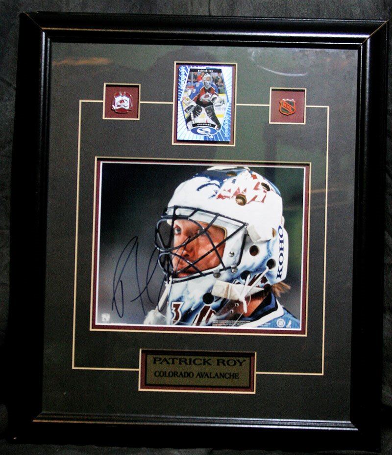 Patrick Roy - Colorado Avalanche Autographed Photo - Framed With Collector Pins & Card