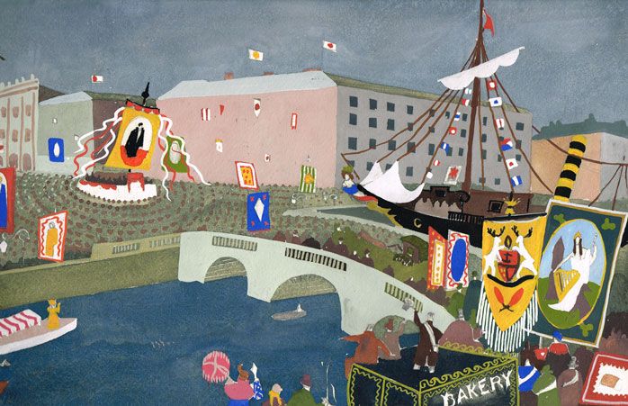 The Bakers Union of Ireland opened their new headquarters, Four Provinces House, in 1947. It housed a bakery school and an 8,000 volume library. Patrick Scott was later, in 1947, to produce a mural for the restaurant at the top of Busáras, commissioned by the architect Michael Scott.