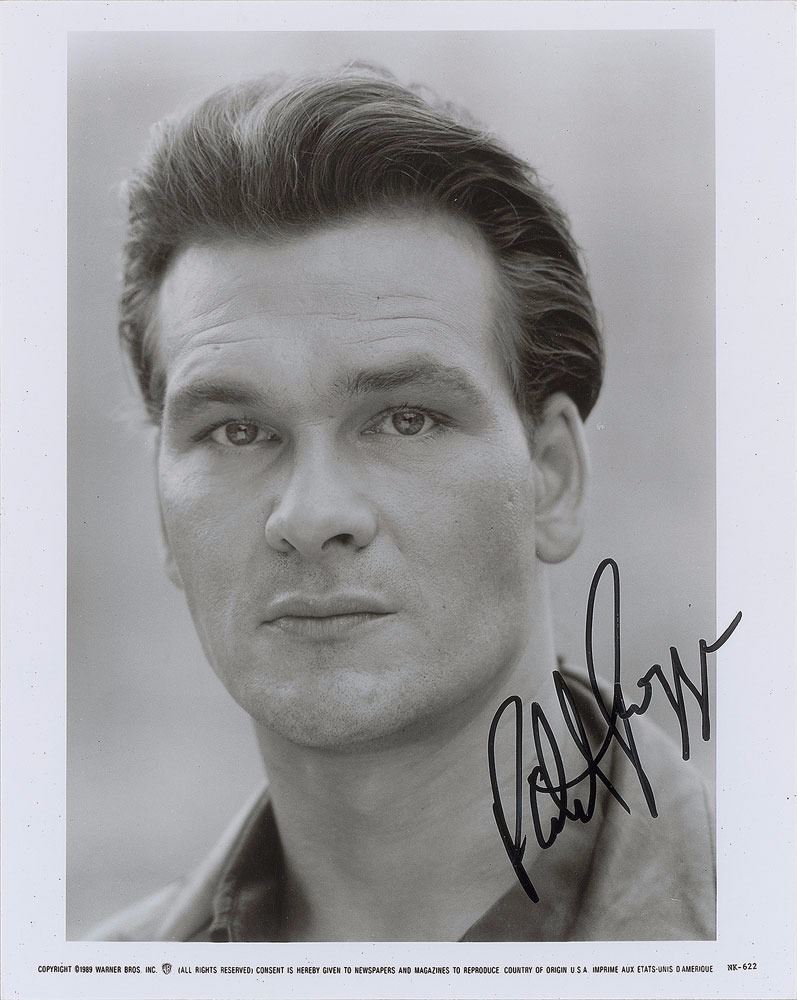 Handsome glossy 8 x 10 Warner Bros. publicity photo of Swayze circa 1989, signed in black felt tip. In fine condition. From the Harvey and Rhoda Kuflik Collection.