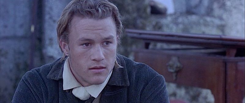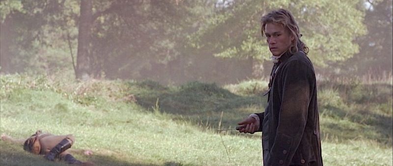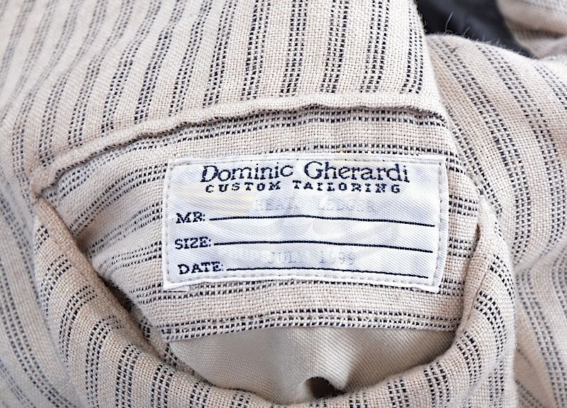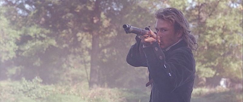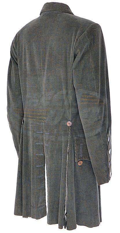 (Columbia, 2000) This coat was worn on screen by Heath Ledger as "Gabriel Martin". It is the coat seen in Gabriel Martin's final scenes and death. The inside pocket has a "Dominic Gherardi" custom tailoring label attached with "Heath Ledger, July 1999" typed on the information lines.