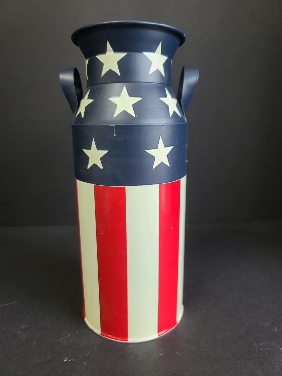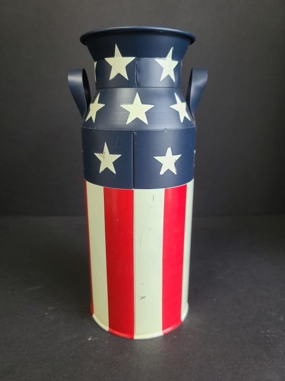 Patriotic Metal Milk Can Style Planter
