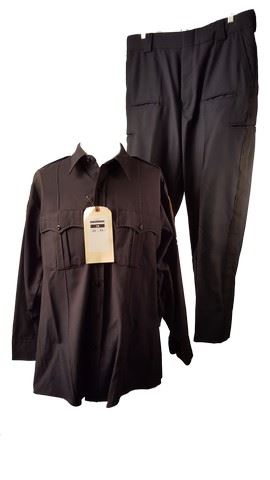 Charlie Collins (Billy Smith) screen worn, production distressed "Flying Cross" Boston Police uniform shirt with Boston Police patches on both shoulders(16.5x33) and a matching pair of "Blauer" police pants(34). Includes a dark grey "Tek Gear" light weight front zip nylon jacket lined with a light grey mesh. Wardrobe tag included!