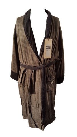 From the CBS Films production Patriots Day is Harrold (Rhett Kidd) screen worn, OD green with black box print robe that is aged and distressed with holes and dirt. Wardrobe tag included!