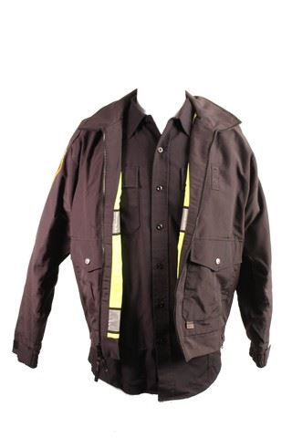 Officer Joey Reynolds (Curtis J. Bellafiore) screen worn, hero, Watertown police uniform shirt and police bomber jacket with Watertown police patches on each shoulder with yellow reflective lining on the inside jacket.