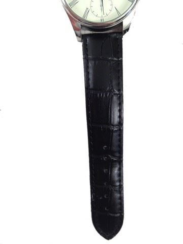 Special Agent Richard DesLauriers (Kevin Bacon) screen used, hero, "Geneva" quartz wrist watch with black leather strap. (Approx. 1" x 10")