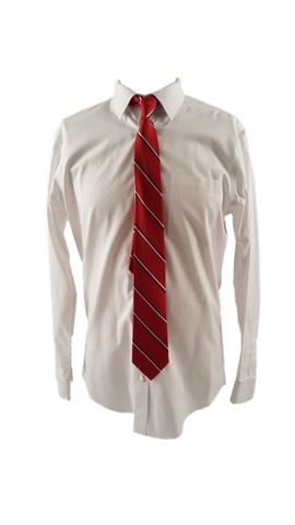 Special Agent Richard DesLauriers (Kevin Bacon) screen worn, white "Nordstrom" button down shirt and a red with navy and white stripped "Lord and Taylor" tie. Includes a white "Brooks Brother" v-neck t-shirt(s) and wardrobe tag.
