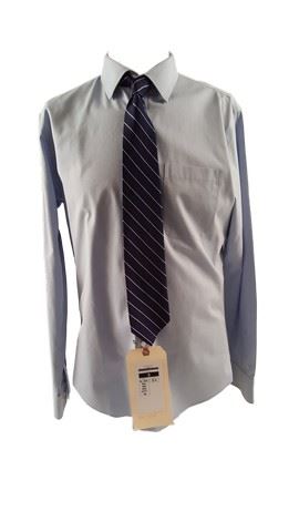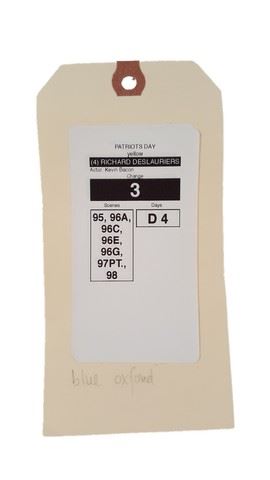 Special Agent Richard DesLauriers (Kevin Bacon) screen worn, blue "Nordstrom" button down shirt with cream pearl buttons(15 1/2 x 34) and a navy with white diagonal "Brooks Brothers" tie. Wardrobe tag included!