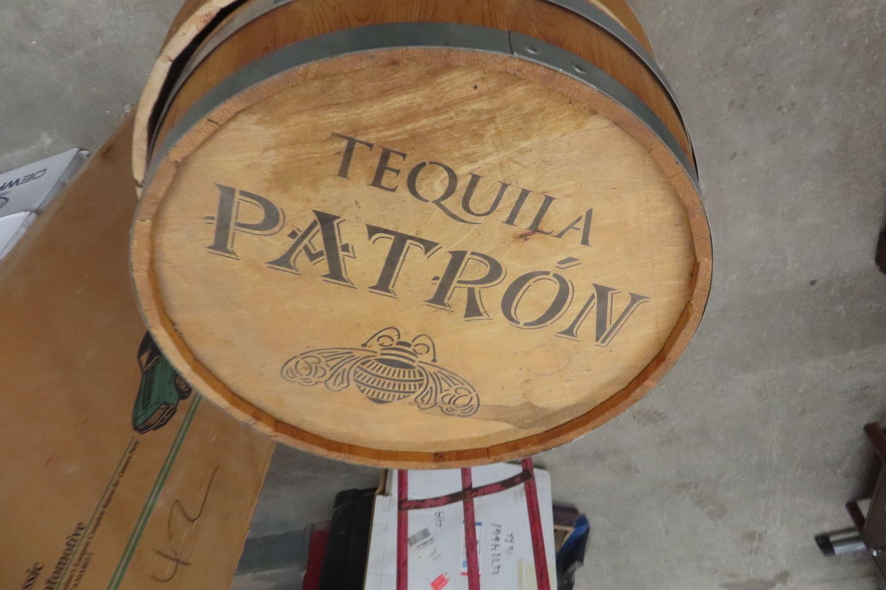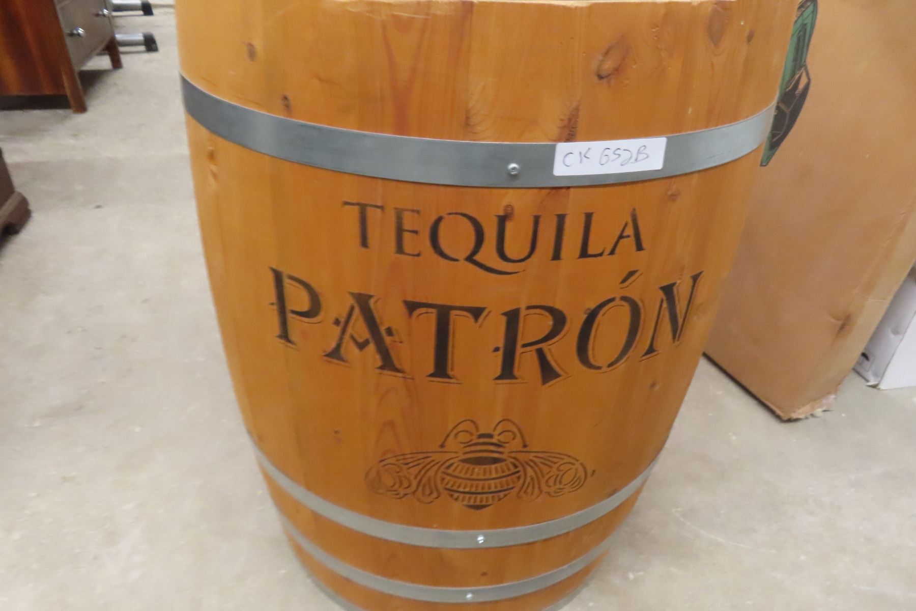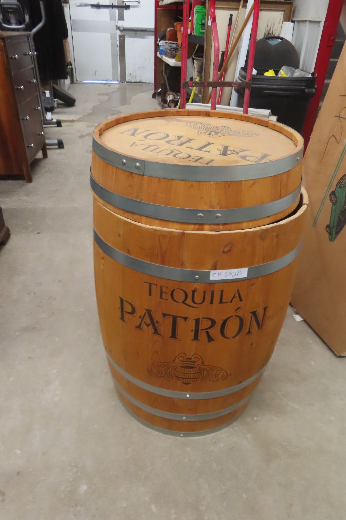 Patron Tequila Wooden Barrel w/ Removable Top - 30" Tall / 24" Diameter