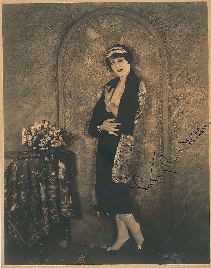 Lovely vintage sepia matte-finish 7.5 x 9.5 full-length portrait, signed in black ink. A light crease and chip to the upper right corner, an irregular spot to the lower border, and mild silvering to dark areas of the image, otherwise fine condition.