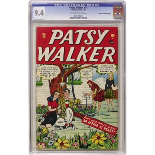 <B>Patsy Walker #14 Mile High pedigree (Atlas, 1948) CGC NM 9.4 Off-white to white pages.</B></I> Harvey Kurtzman "Hey Look" backup feature. Overstreet 2007 NM- 9.2 value = $165. CGC census 6/07: 1 in 9.4, none higher.<BR><BR><b>Shipping:</b> Comics - Slabbed (certified) (<a target="_blank" href="http://www.heritageauctions.com/common/shipping.php">view shipping information</a>)