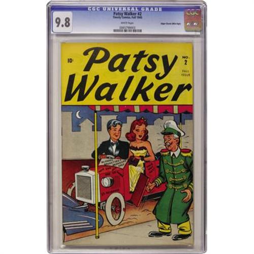 <B>Patsy Walker #2 Mile High pedigree (Atlas, 1945) CGC NM/MT 9.8 White pages.</B></I> Peerless Edgar Church copy. Overstreet 2007 NM- 9.2 value = $335. CGC census 6/07: 1 in 9.8, none higher.<BR><BR><b>Shipping:</b> Comics - Slabbed (certified) (<a target="_blank" href="http://www.heritageauctions.com/common/shipping.php">view shipping information</a>)
