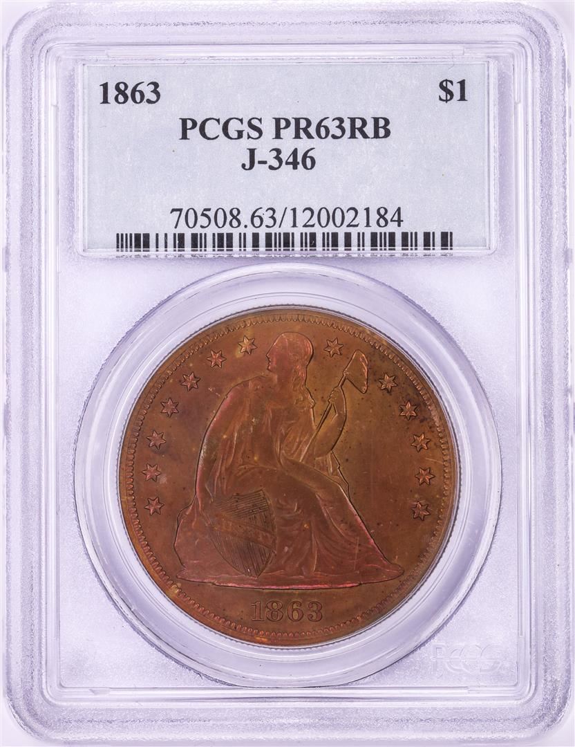 One Pattern 1863 $1 Proof Seated Dollar Coin PCGS PR63RB Judd-346. PCGS Graded.