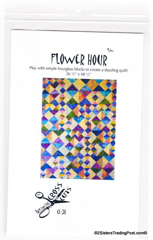 Pattern is for 'Flower Hour' by Kay M. Capps Cross for Cross Cuts. Pattern is for a 36.5" x 48.5" quilt designed with an hourglass block design.