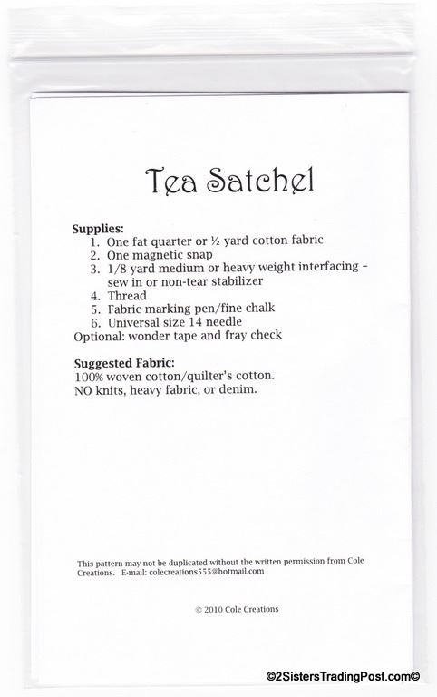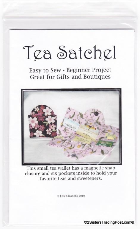 Pattern for a 'Tea Satchel' form Cole Creations 2010. The pattern includes instructions to make a six pocket tea wallet with a magnetic snap closure.