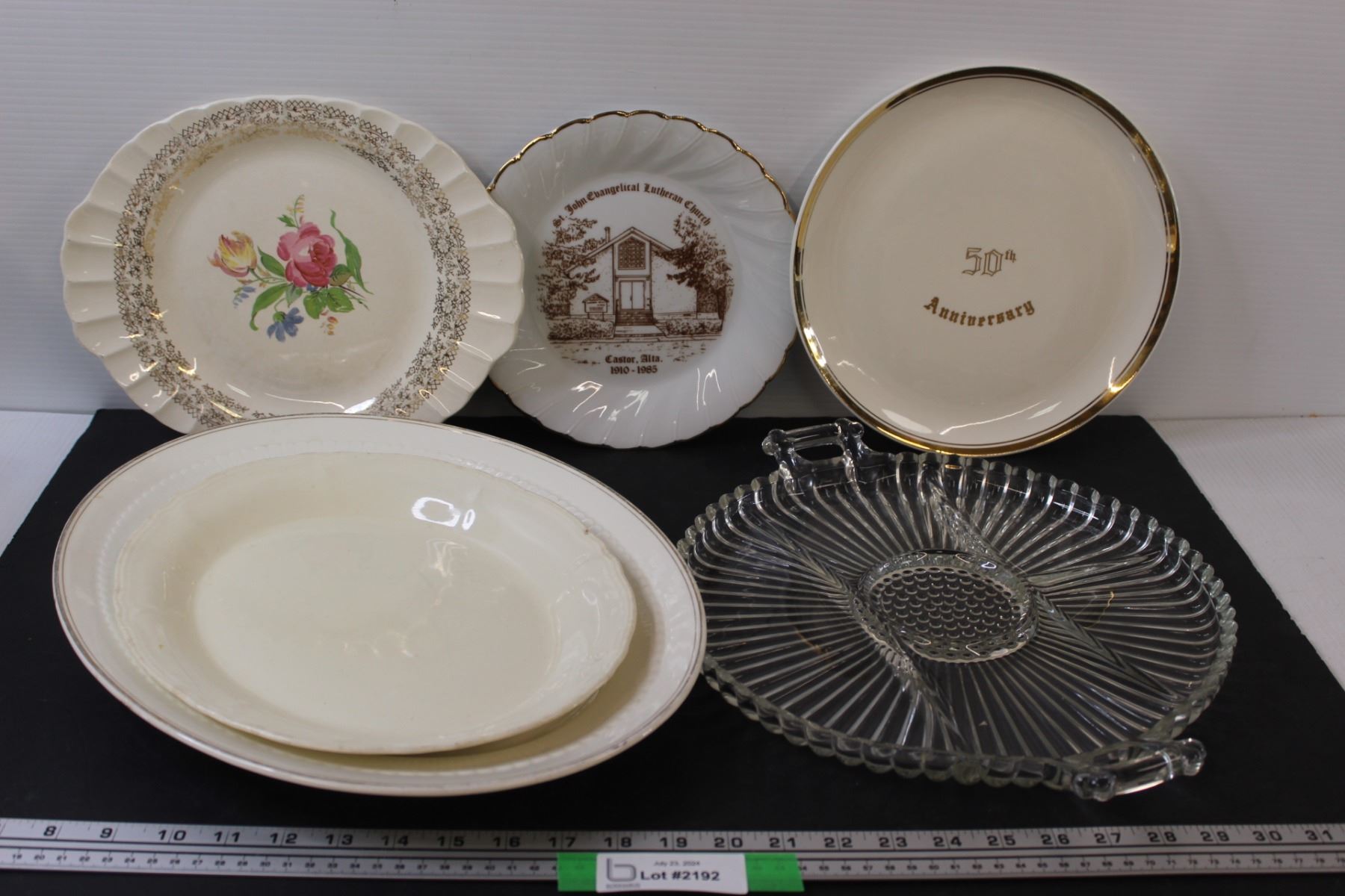 Patterned Pickle & Cheese Tray, (2) Serving Trays, (3) Plates
