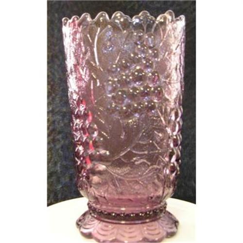 Lavender to deep purple pressed glass grapes and leaves. Interesting hallmark on the bottom of the vase.