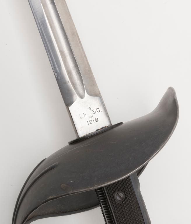 Patton saber with scabbard, marked “L.F. & C., dated 1918 and U.S.; very good + condition. Est.: $350-$700.