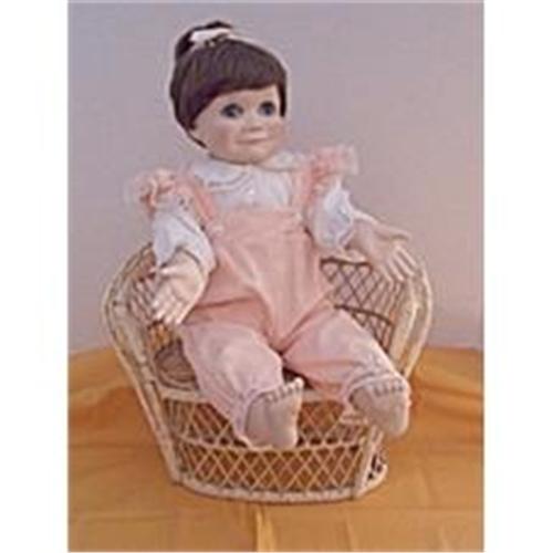 <table width="100%" border="0" cellspacing="0" cellpadding="4"><tr><td><em> </em></td></tr><tr> <td width="100%"> Patty Cake is a very special little girl. Her head, hands and feet are all porcelain. She has bright blue eyes and lovely brown hair with a cute little top knot tied with a peach bow to match her peach baby corduroy romper. Her romper has a pinafore style ruffle, edged in white lace, as is her white long sleeved blouse. Everything about her is in excellent condition, though you may find a little dust as we are sure she was on display at some point... Sorry, we have no box. Order three of anything that can be shipped in one container, pay with PayPal and shipping is FREE! </td></tr><tr> <td> </td></tr><tr> <td>Reference #: DL899</td></tr><tr><td>Condition:very good</td></tr><tr><td>Year:1990</td></tr><tr><td>Maker:unknown</td></tr><tr><td>Height:17</td></tr><tr><td>Title:Patty Cake from the Nursery Babies Series</td></tr><tr><td>Materials:porcelain/fabric & fill</td></tr><tr><td>Location:Auburn, IN</td></tr></table>