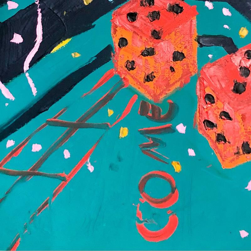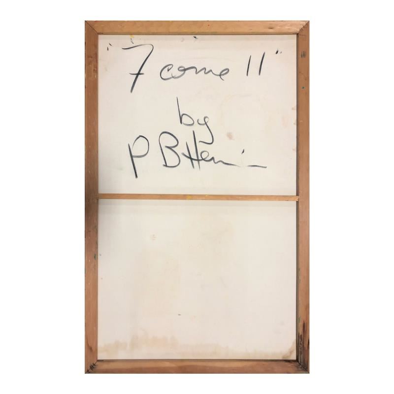 "7 Come 11" is an original oil painting on stretched canvas by Paul Blaine Henrie (1932-1999). The piece is hand signed by the artist and comes with a letter of authenticity. Please note that due to the age of this piece and the way it was stored, there are minor sings of wear, particularly on the corners and edges. Measures approximately. 48" x 30" (image).