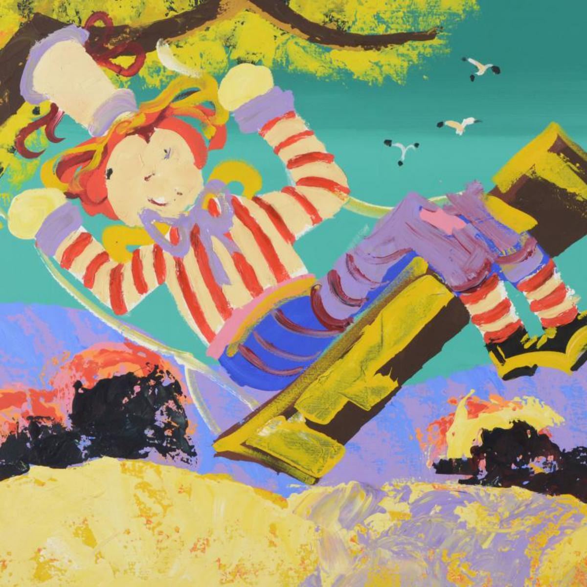"Flying Machine" is an original oil painting on stretched canvas by Paul Blaine Henrie (1932-1999), hand signed by the artist. Includes Certificate of Authenticity. Measures approx. 48" x 36" (image). Due to the age of this piece and the way it was stored, there are minor sings of wear, particularly on the corners and edges. Reference #: 222118