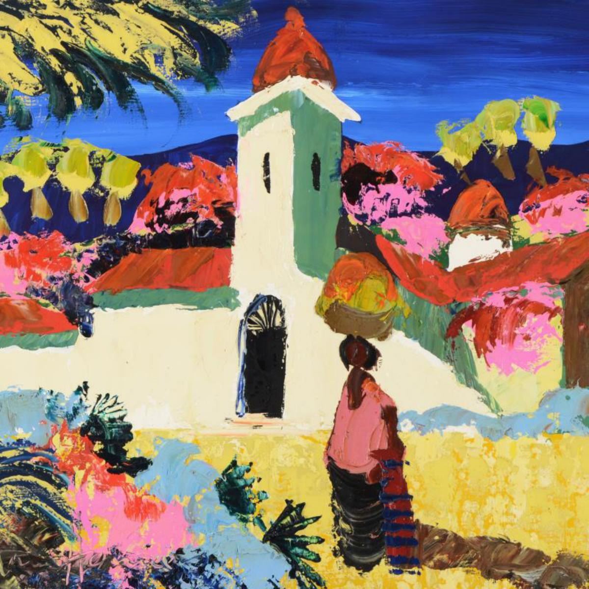 Paul Blaine Henrie (1932-1999), "Mexican Mission" Original Oil Painting (48" x 30") on Canvas, Hand