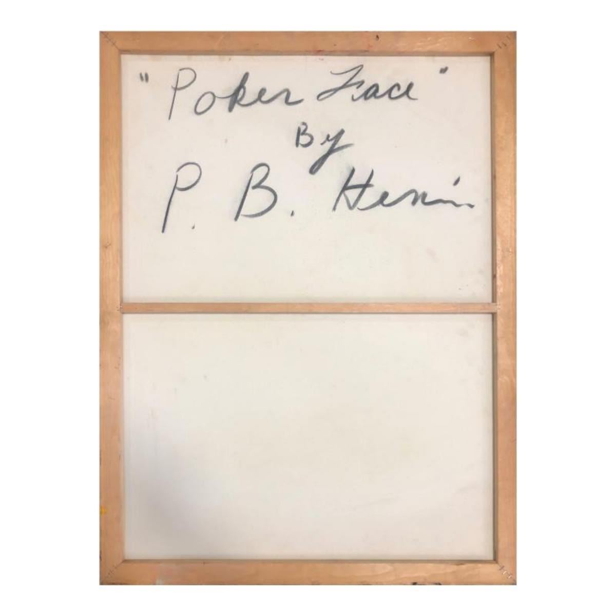 "Poker Face" is an original oil painting on stretched canvas by Paul Blaine Henrie (1932-1999). The piece is hand signed by the artist and comes with a letter of authenticity. Please note that due to the age of this piece and the way it was stored, there are minor sings of wear, particularly on the corners and edges. Measures approximately. 40" x 30" (image). Reference #: 244040