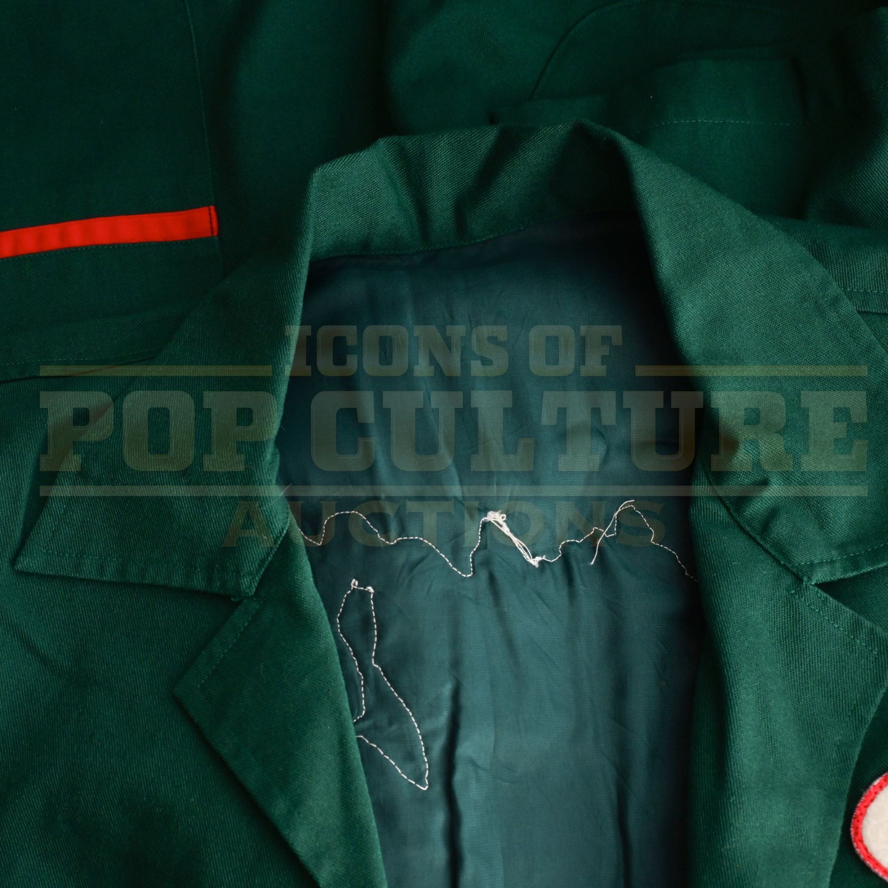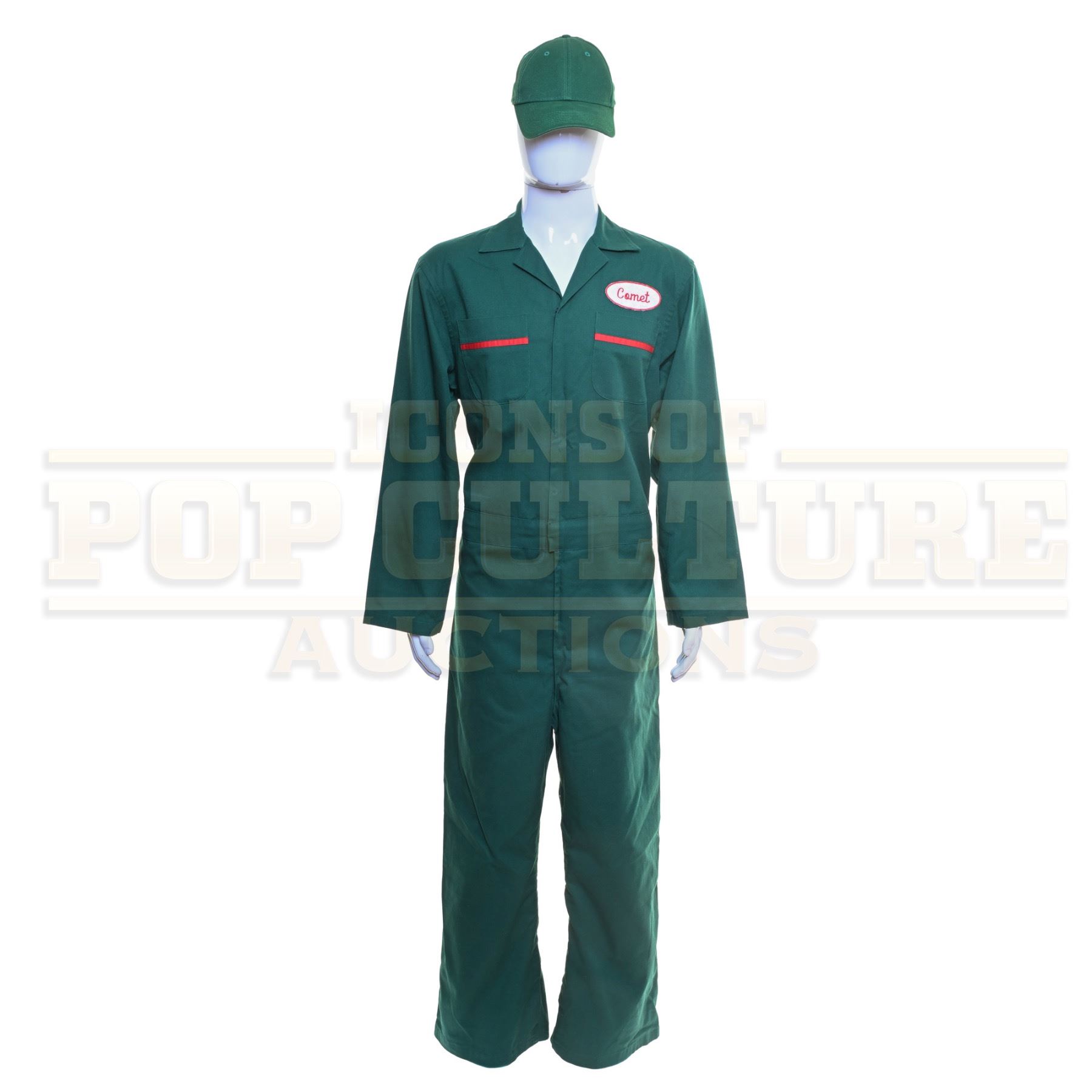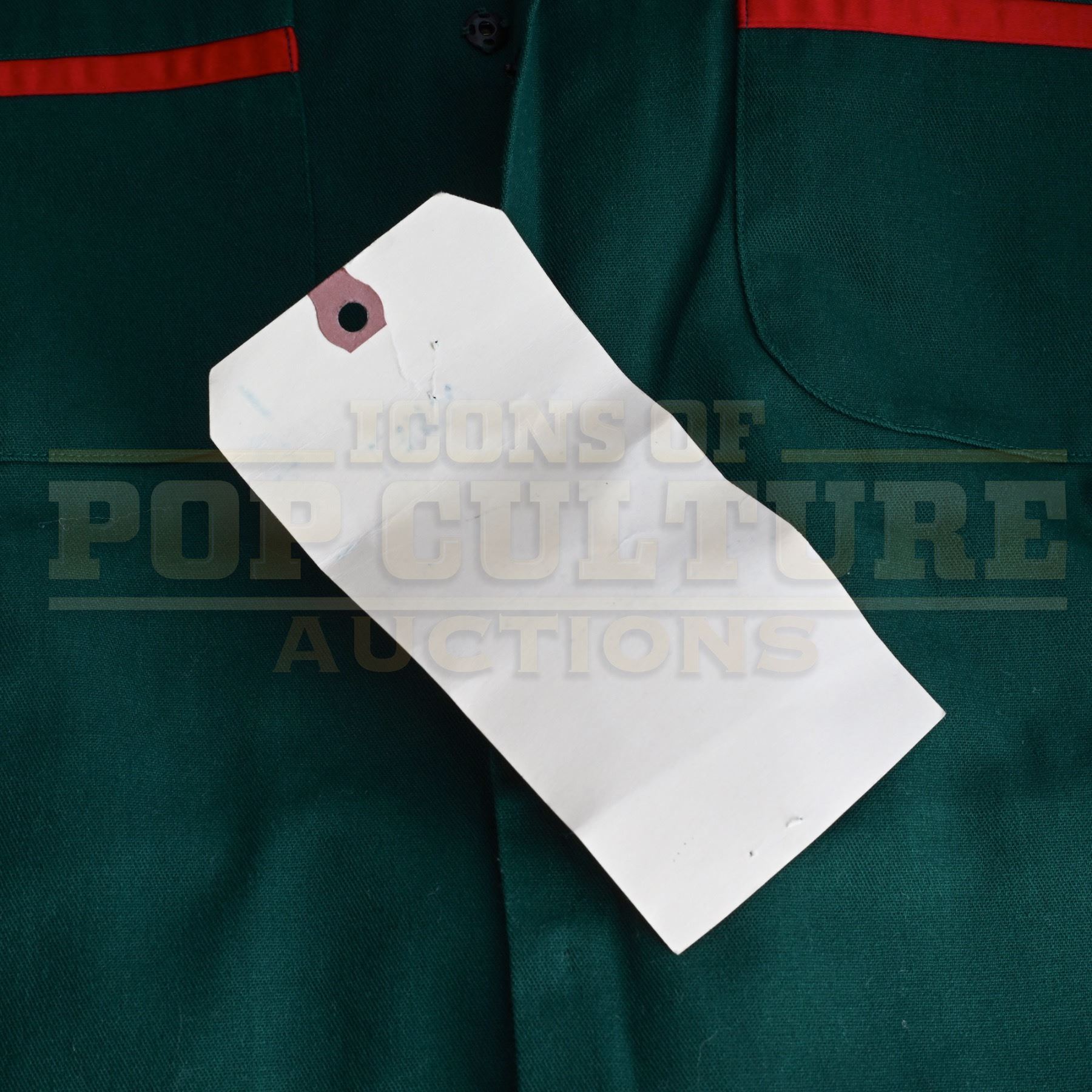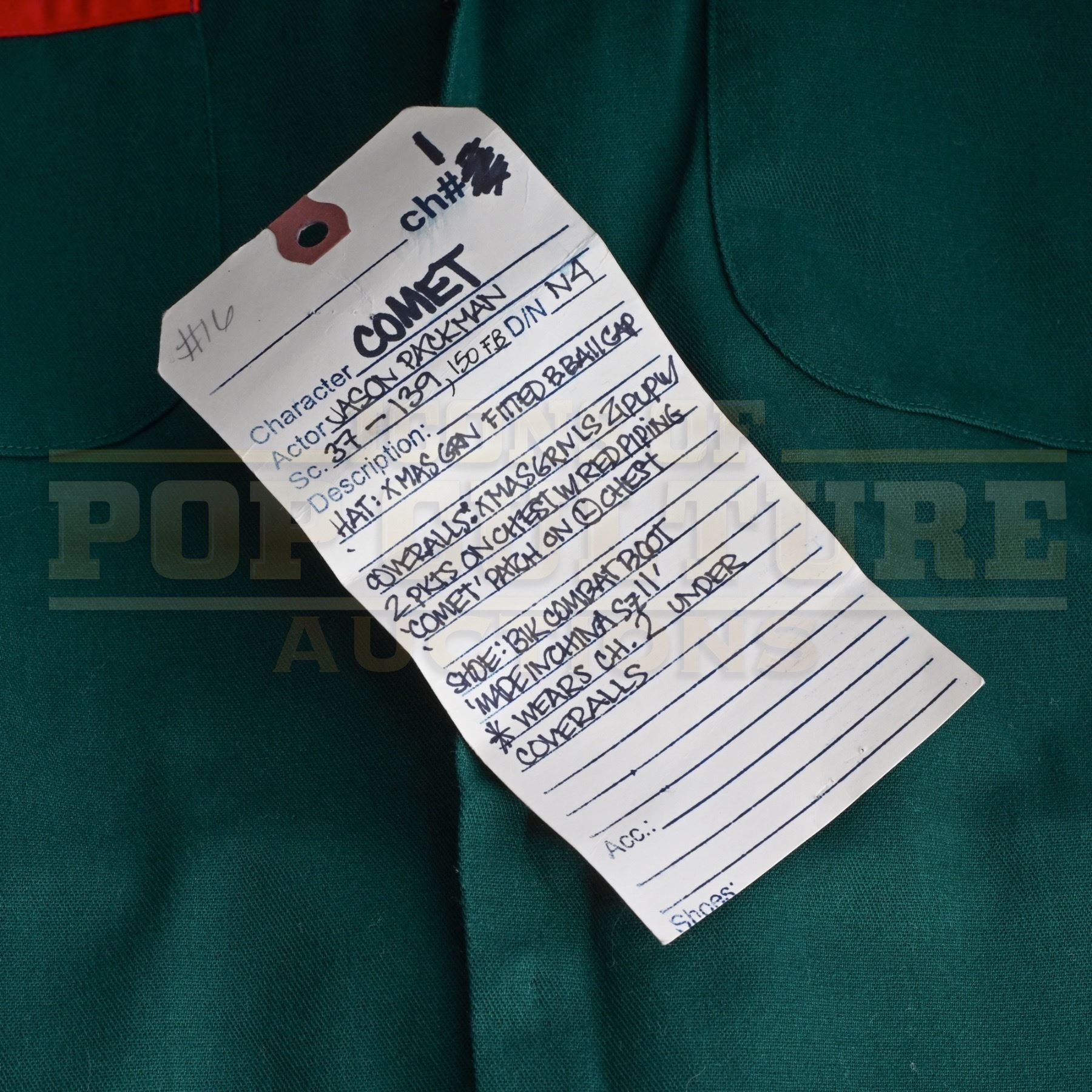 This custom-made costume was worn on screen by Jason Packham as Comet, one of the mall-invading crooks, in the hit comedy Paul Blart: Mall Cop. Seen early in the film as the gang covertly infiltrates and takes over the shopping mall, this memorable outfit includes a pair of green coveralls featuring red trim accents and “Comet” stitched name patch on the chest, along with matching green cap. The back proudly displays the bold “Santa’s Village” logo, matching the holiday-themed disguises used in the heist sequence.