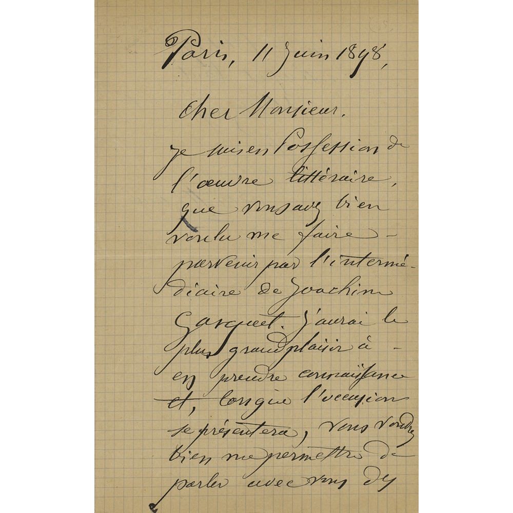 Montfort had just published his second collection, Chair (1898), and was introduced to Cezanne by the poet and art critic Joachim Gasquet. Gasquet had befriended Cezanne at an 1895 exhibition at Aix-en-Provence, and would author a biography of the artist in 1921. A fabulous handwritten letter by the important Post-Impressionist painter, connecting the visual and literary arts in fin de siècle France.