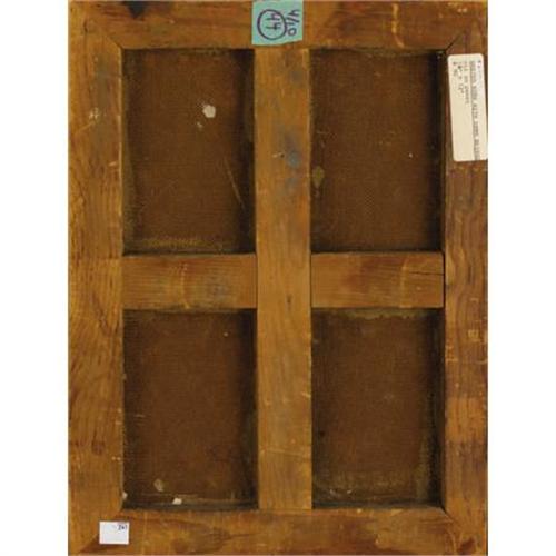 <B>PAUL CADMUS </B></I>(American 1904-1999)<BR><I>Seated Nude with Arms Raised, </B></I>1945<BR>Tempera with oil glazes on masonite panel <BR>16 x 12 inches (40.6 x 30.5 cm)<BR>Signed and dated faintly in the background just left of the sitter's right elbow:<I> cadmus / 45</B></I><BR> <B>Condition Report:</B> With surface dirt and scratches, minor losses to three corners and edges of the board, otherwise good condition<BR><BR><b>Shipping:</b> Requires 3rd Party Shipping (<a target="_blank" href="http://www.heritageauctions.com/common/shipping.php">view shipping information</a>)