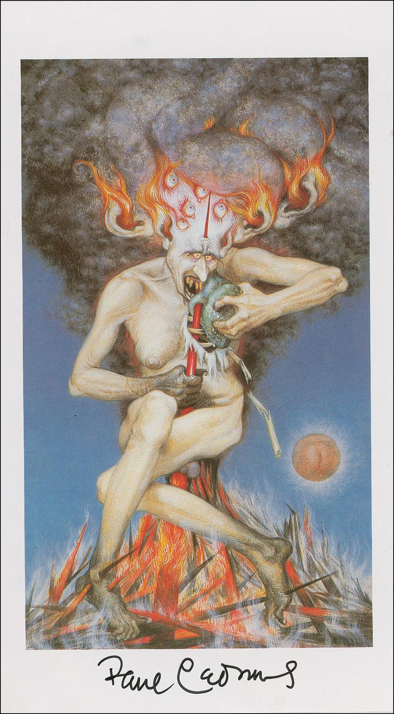 Disturbing color book print of one of Cadmus’s works, 5 x 9, clipped from a larger page, signed in the lower border in black felt tip. In fine condition.