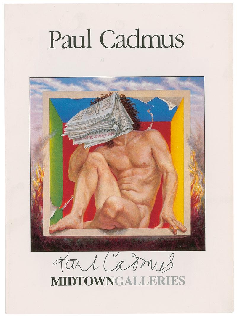 Tri-fold brochure for a Cadmus 50th anniversary exhibition in New York in 1988, measuring 5.5 x 7.5 closed, signed on the front cover in black ink. In fine condition.
